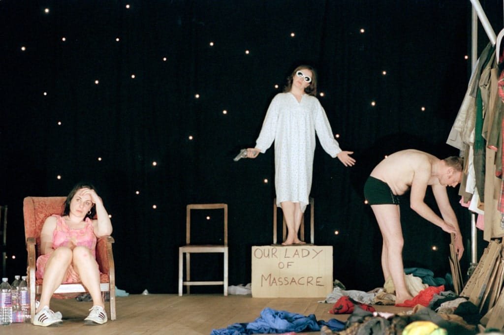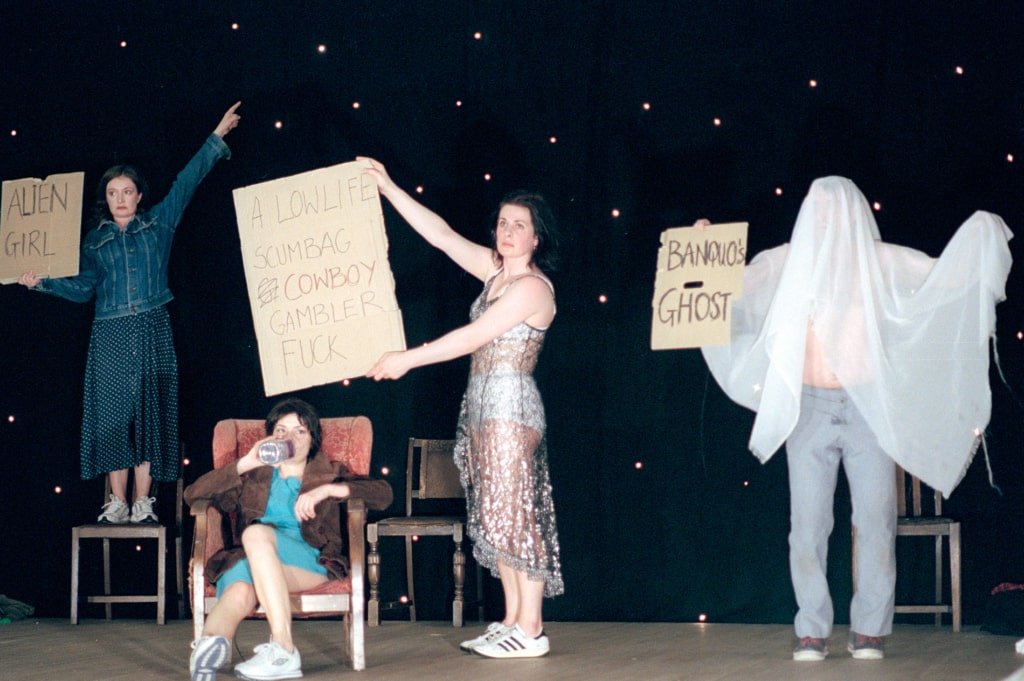 Throughout the festival, the Forced Entertainment troupe has several provocative and joyful shows in store for the public to enjoy. Since their creation in 1984, the troupe has always created performances that challenge the rules and the audience’s expectations, drawing influences from theater, dance, performance, music, and popular forms of expression such as cabaret and stand-up comedy. 12 am: Awake & looking down is both hilarious and hypnotic, challenging the ability of theater to bring characters to life and to inspire belief in its fiction. On stage, five silent actors, a dressing room overflowing with clothes, and a series of signs. The spectator is invited to become attached to these species of story and to these strangely familiar characters, who are simply made of a costume and a few gestures or words.