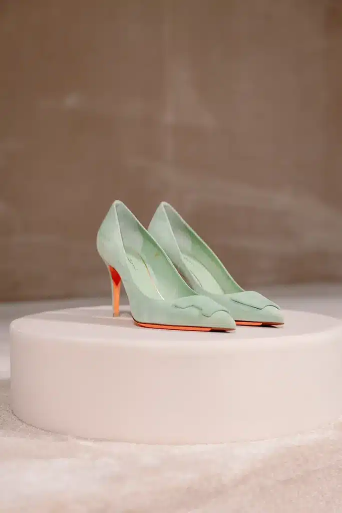 Now, the conversation turns wearable. For women, the collection translates artistry into irresistible style. Think sculptural forms and airy lightness. Sequined back-strap pumps truly dazzle, capturing the Adriatic’s sparkle perfectly. A matching minaudière completes this stunning ensemble. Meanwhile, the classic Carla loafer gets a modern update, with fresh, architectural proportions. The Yorker sneaker also shines, blending sporty comfort with artisanal grace.
