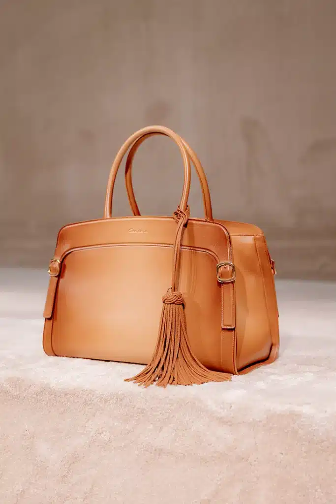 The Montecarlo sneaker makes a vibrant statement, featuring grained Carezza leather with an Arancio Santoni accent. This pop of color mirrors the collaboration’s palette, while Goodyear Reverse construction lightens every step. Finally, the Vanguard leather goods line delivers peak performance with supple backpacks and sleek briefcases, all finished with Santoni’s signature artisanal touch.