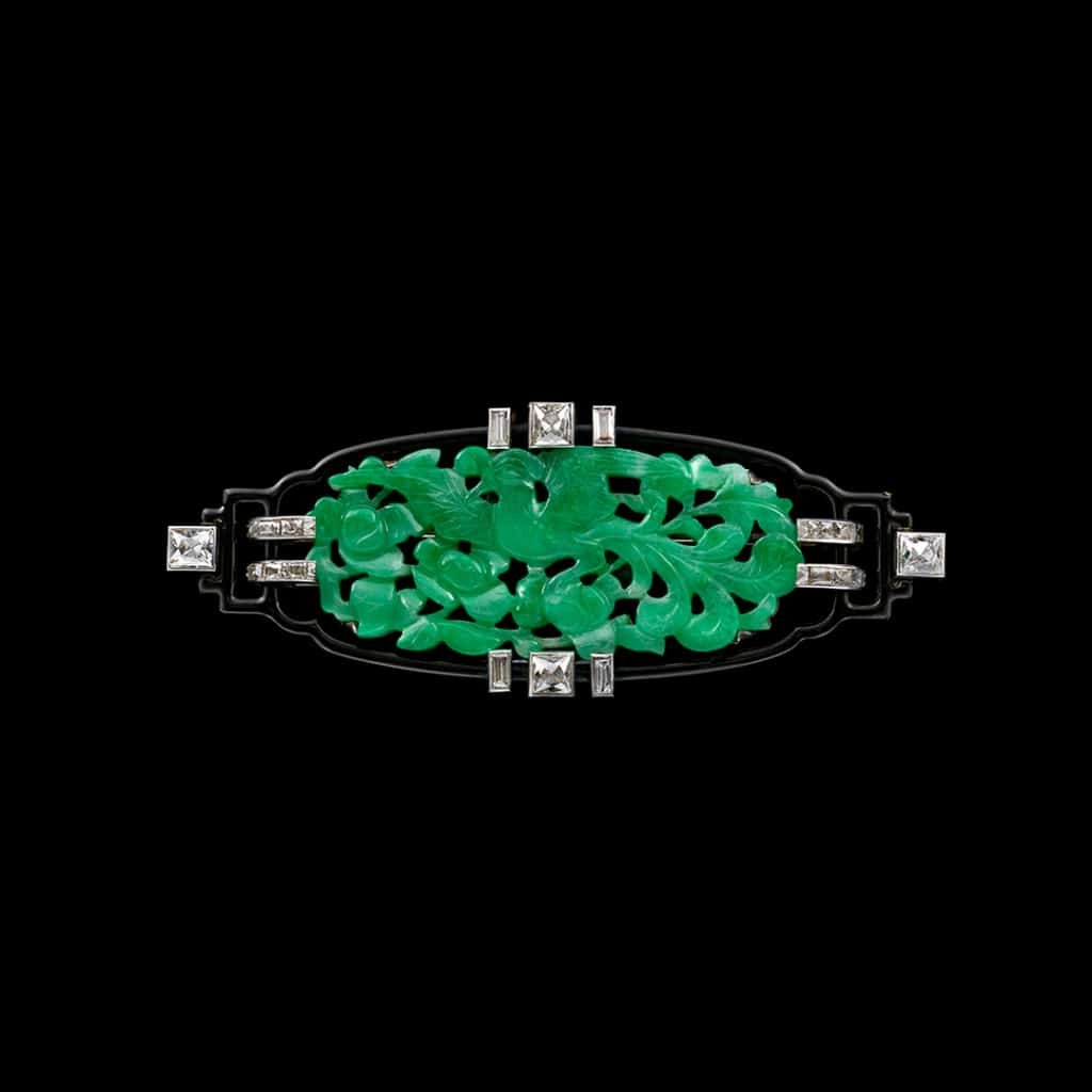 The genius of Boucheron’s Art Deco lies in its synthesis of a global sensibility into a coherent and powerful aesthetic. The Maison looked beyond Europe, absorbing artistic impulses from distant cultures and refining them into a signature style. The legendary 1928 commission for the Maharaja of Patiala stands as a monumental example. Its rows of pearls and gemstones echo Indian grandeur while adhering to a strict geometric discipline. This cross-cultural dialogue defined its material choices, where deep Japanese lacquer provided a dramatic ground for brilliant diamonds, and vibrant slabs of lapis-lazuli, jade, and coral were arranged as bold chromatic statements.