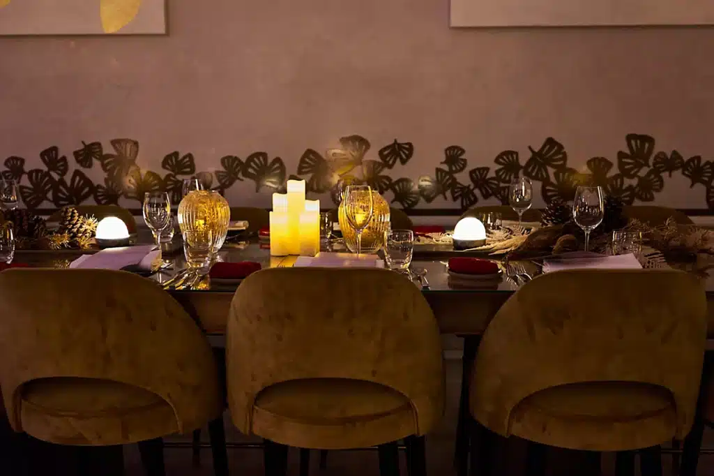 The moment you step into Rivages, the scene is set. The entire space is bathed in the soft, intimate glow of candlelight, casting a golden hue across the room. This is a sophisticated gathering where the energy hums at a refined frequency. The true pulse of the evening comes from a live band, performing soulful renditions of American classics, from timeless Motown hits to the smooth notes of “Moon River.”